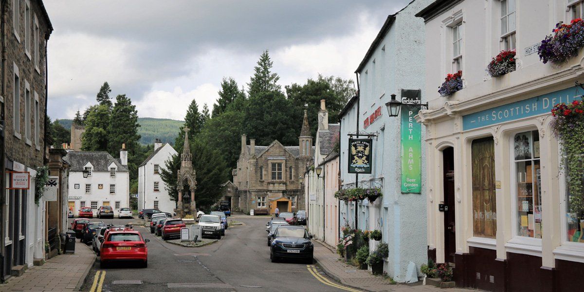 There are plenty of delightful places to eat and drink including the Taybank, Atholl Arms, Arran Bakery, The Scottish Deli and there are some lovely shops including Hatton House Art and Design, Jeffries Interiors and the Atholl Gallery. It’s a small village but the kind of place you could easily spend a whole day just wandering...